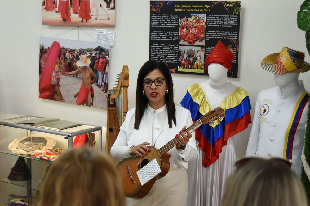 Мероприятие состоялось в рамках выставки «Путешествие по Венесуэле», на которой представлены фотографии и изделия декоративно-прикладного искусства, отражающие самобытность, колорит и культурное многообразие страны.