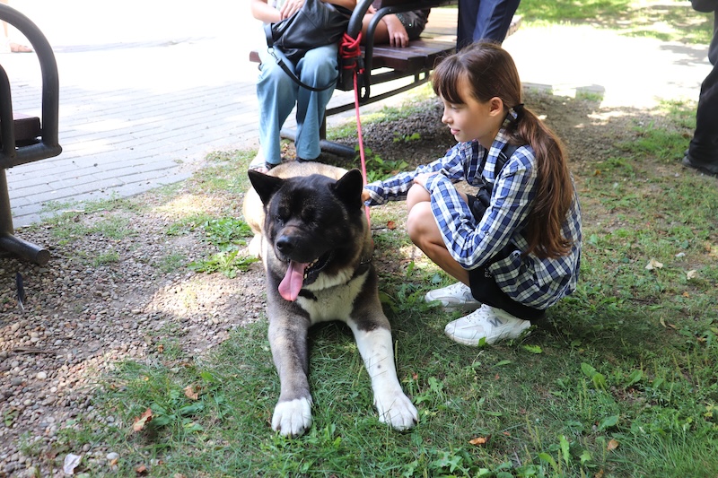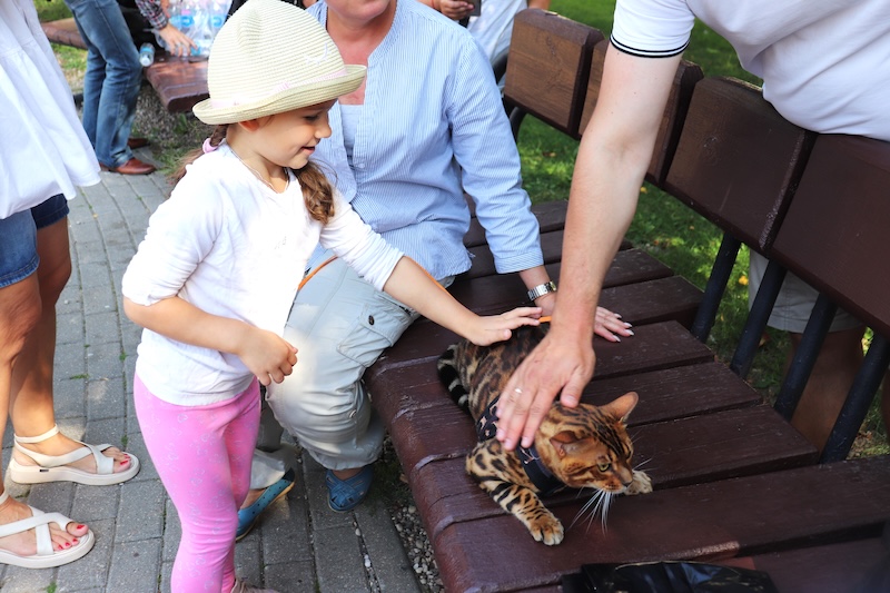 Наравне с рисованием, важной частью мероприятия стала зоотерапия. Детей и взрослых покорил самый большой, добрый и ласковый пёс Титан породы американская акита, а также пара независимых и гордых бенгальских кошек.