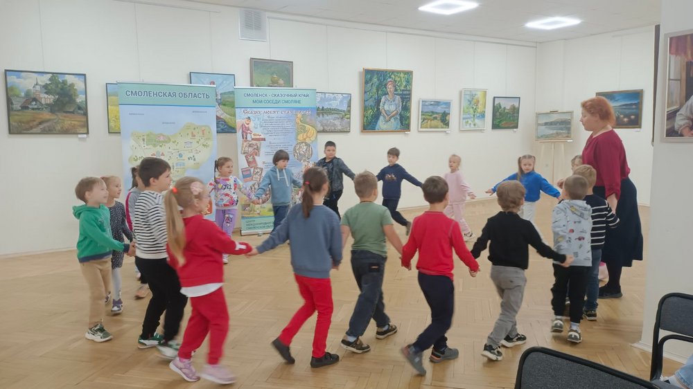 На мероприятии воспитанники детсада ознакомились с библиотекой, художественной выставкой «З любоўю да спадчыны», на которой представлены разнообразные и красивые картины Евразийского художественного содружества.