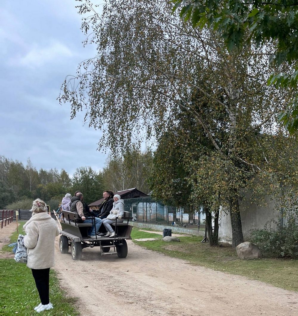 Музейный комплекс старинных народных ремёсел и технологий «Дудудки» славится не только профессионалами-ремесленниками высочайшего класса, но и разнообразием животного мира. Гостей из Минска встретили местные гуси и индюки, ослы и пони, а также настоящая легенда и один из символов музея – кабан по имени Семён Семёнович (в третьем поколении). Ну и куда же без сопровождения котов и котиков, которые неизменно привлекали к себе внимание всех без исключения гостей музея. Кроме знакомства с местной фауной сотрудники библиотеки смогли «с ветерком» прокатиться в настоящей телеге, запряжённой резвой лошадью.