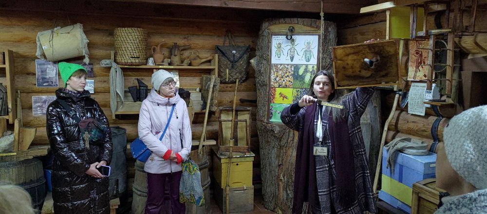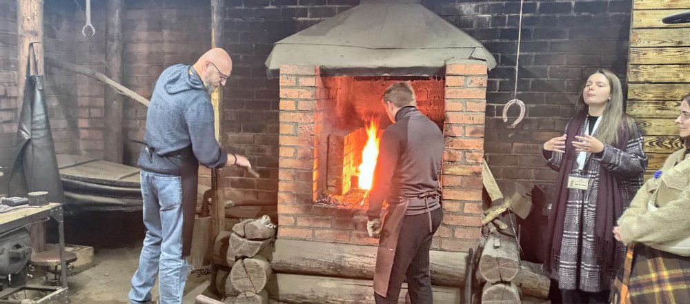 На территории самого музея для посетителей была подготовлена насыщенная культурно-познавательная программа. Экскурсовод Валентина провела очень интересную, информационно насыщенную экскурсию по основным «профессиональным» секциям «Дудудок», в которых сотрудники библиотеки узнали много нового о народных музыкальных инструментах, о мастерстве соломоплетения, ткачества, бортничества и гончарного дела Беларуси. Не были забыты и хлебопекарня, где всем предложили попробовать местный хлеб, выпеченный в традиционной каменной печи, посетить кузницу и принять участие в процессе ковки железной подковы. Помимо хлеба, гости «Дудудок» продегустировали и другие натуральные продукты, выращенные на территории музея – сало, мёд, солёные огурцы и бочковую капусту.