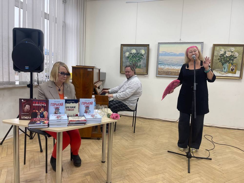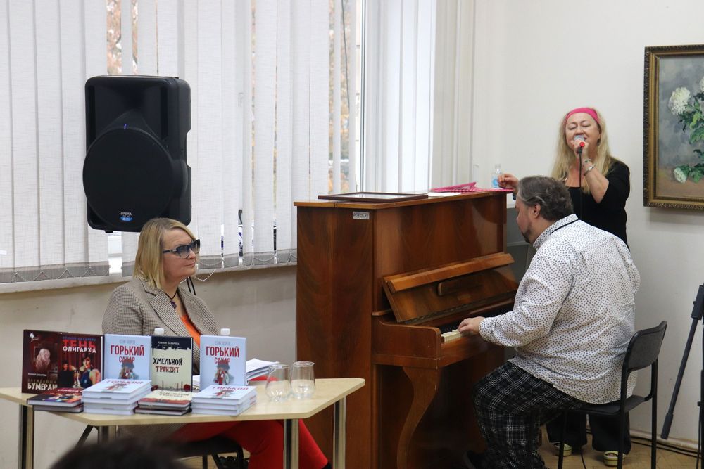 На протяжении всего творческого вечера перед участниками мероприятия выступали друзья Ксении Бахаревой, которые пришли поддержать писателя - джазовый исполнитель Светлана Круглова и пианист, композитор Андрей Лабчевский. Блистательный дуэт исполнил чувственные и проникновенные джазовые композиции, в которых нашлось место и сладкому коварству, и горькой любви.
