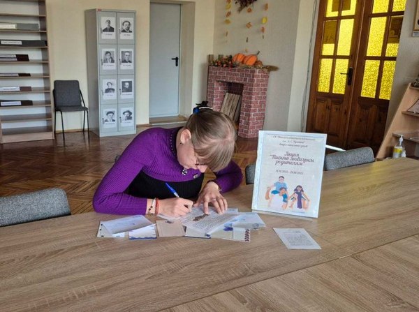 С 13 по 24 октября 2025 года в отделе читальных залов ГУ «Минская областная библиотека им. А. С. Пушкина» была реализована социально-значимая акция «Письмо любимым родителям», приуроченная ко Дню матери и Дню отца. В современном мире, где общение всё чаще сводится к коротким сообщениям, эта инициатива предложила вернуться к искренней и тёплой форме диалога — рукописному письму. Участниками стали как читатели, так и сотрудники библиотеки, что создало особую, доверительную атмосферу. 25 октября все письма отправят адресатам, чтобы порадовать тех, кому они были предназначены.