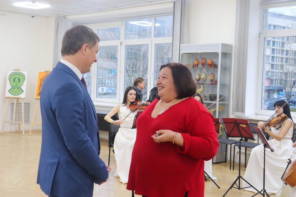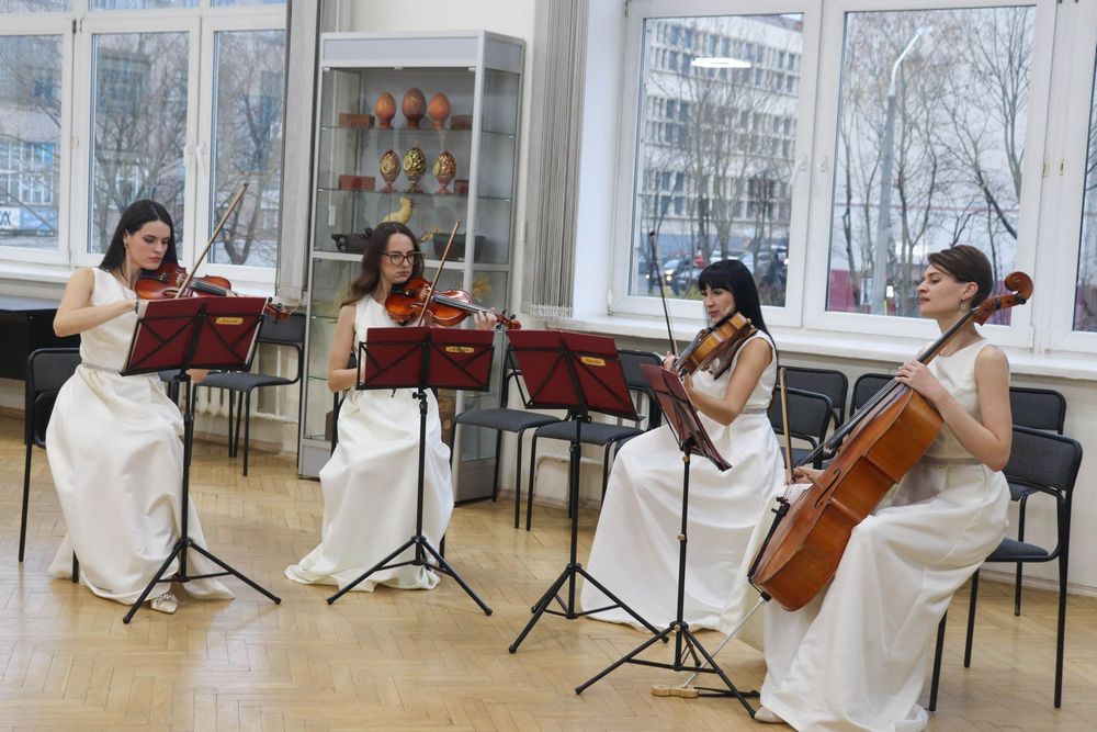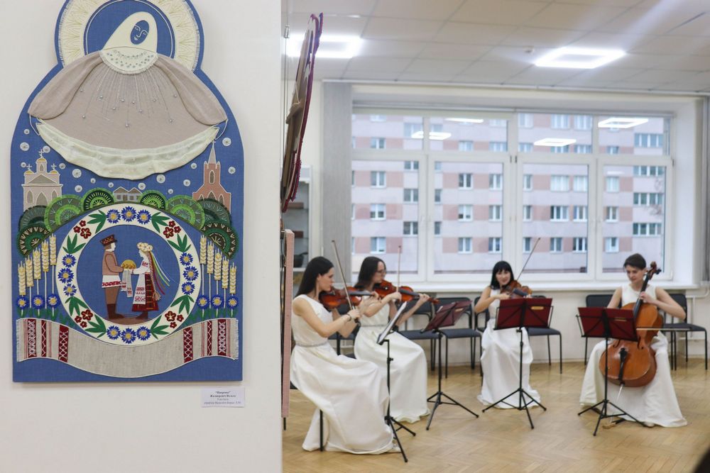 После официальной части мероприятия все желающие приняли участие в обзорной экскурсии по выставке, которую провела председатель цикловой комиссии «Декоративно-прикладное искусство» Людмила Волкович-Борис. На протяжении всего вечера все присутствующие наслаждались живой инструментальной музыкой в исполнении лауреатов международных и республиканских конкурсов, обворожительных участниц струнного квартета «Амелия» Молодечненского государственного музыкального колледжа имени М.К. Огинского.