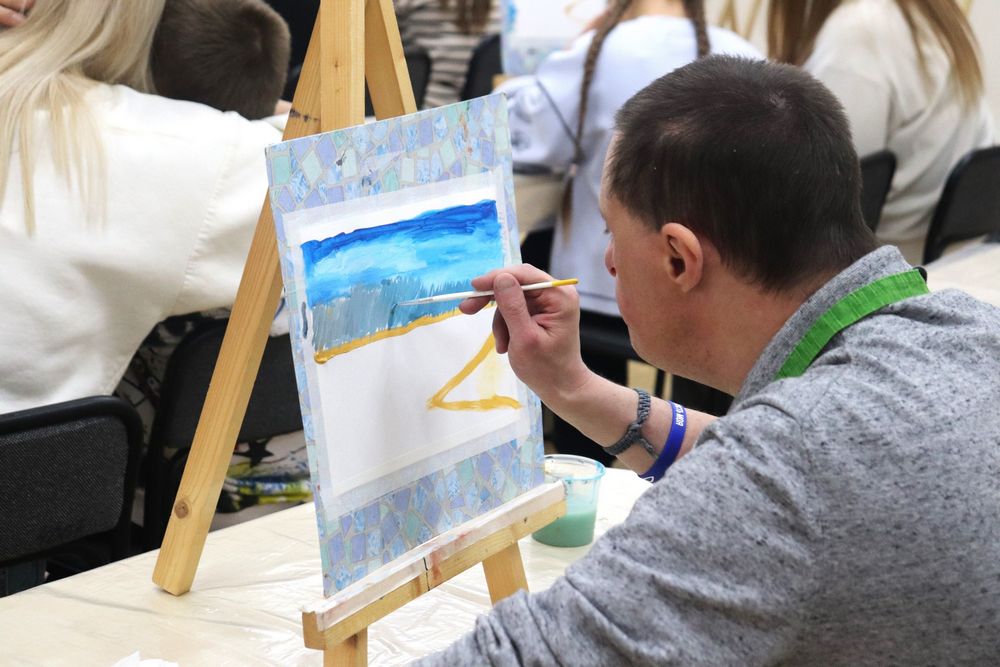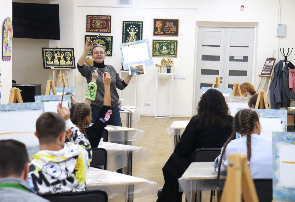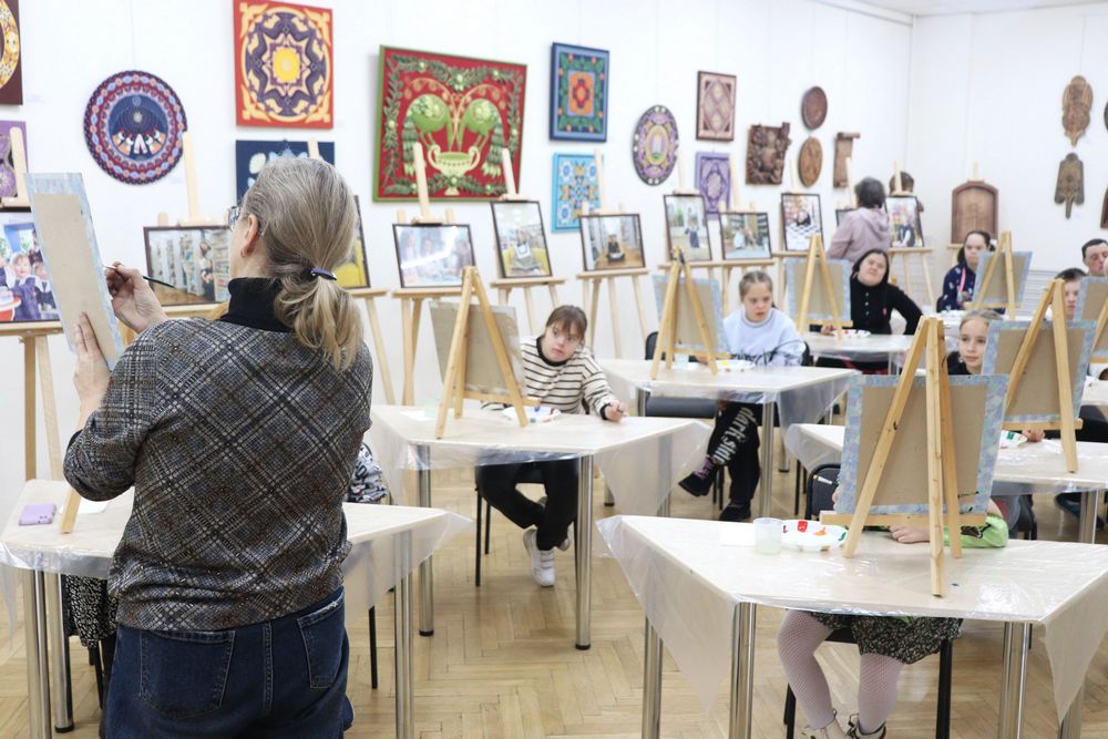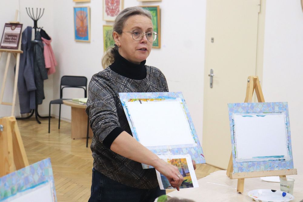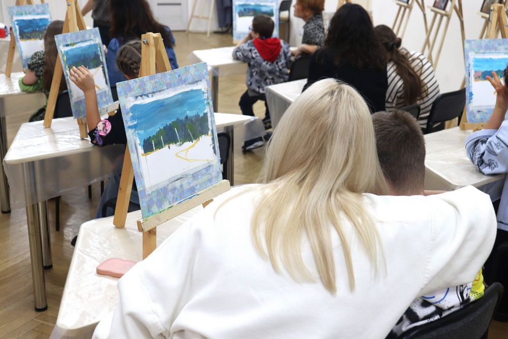 В Минской областной библиотеке имени А.С. Пушкина 29 октября 2025 года состоялся художественный мастер-класс «Навстречу Солнцу – краски жизни», организованный Клубом многодетных и семей с детьми с особенностями развития «Навстречу солнцу» отдела маркетинга и социокультурной деятельности. Партнёрами мероприятия стали ООО «Фабрика желаний», ОАО «Лидское пиво», компания DAGGprint и арт-студия «КреРис».