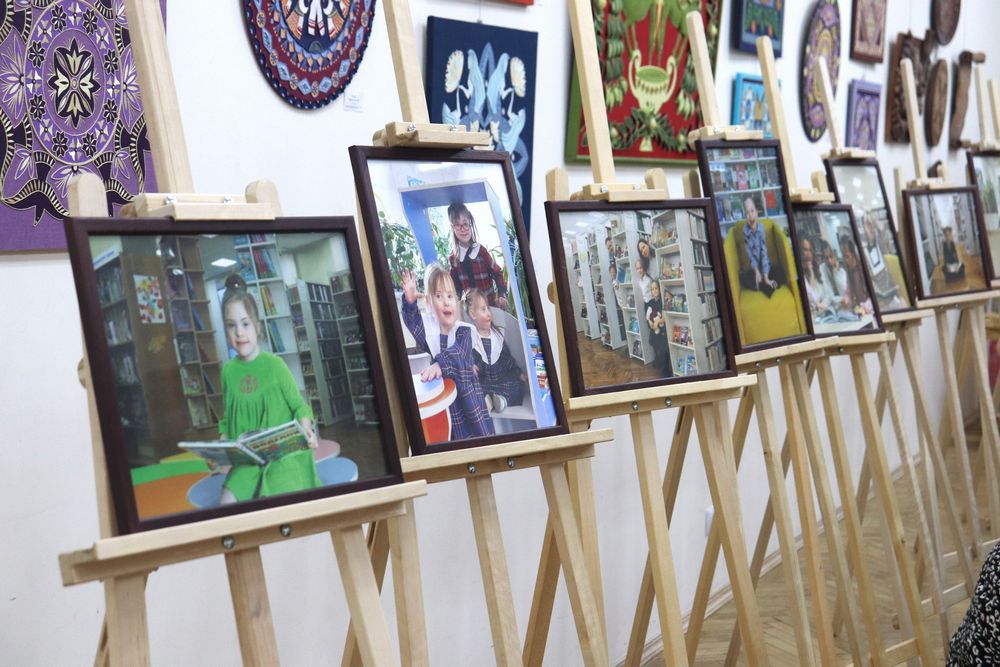 На время мастер-класса выставочный зал Минской областной библиотеки был оформлен избранными работами фотовыставки «Дети солнца», которая экспонировалась в холле второго этажа библиотеки весной прошлого года. Автор выставки, волонтёр и фотограф Виталий Соболько, запечатлел «солнечных» ребят и их родителей в различных интерьерах «Пушкинки», превратив простые, на первый взгляд, фотосессии в своеобразный гимн оптимизма, доброты и силы человеческого духа.