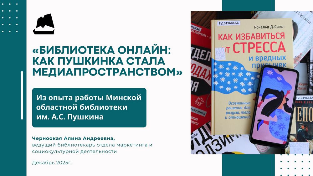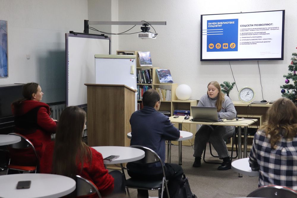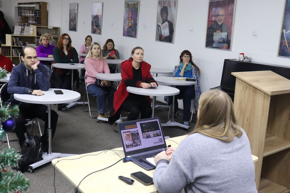 В Минской областной библиотеке имени А.С. Пушкина ведётся активная работа по обмену опытом с коллегами из всех регионов Беларуси. 12 декабря 2025 года состоялась лекция ведущего библиотекаря отдела маркетинга и социокультурной деятельности Алины Черноокой «Библиотека онлайн: как Пушкинка стала медиапространством». Встреча прошла в рамках учебной деятельности Института повышения квалификации и переподготовки кадров ГУ «Белорусский государственный университет культуры и искусств».