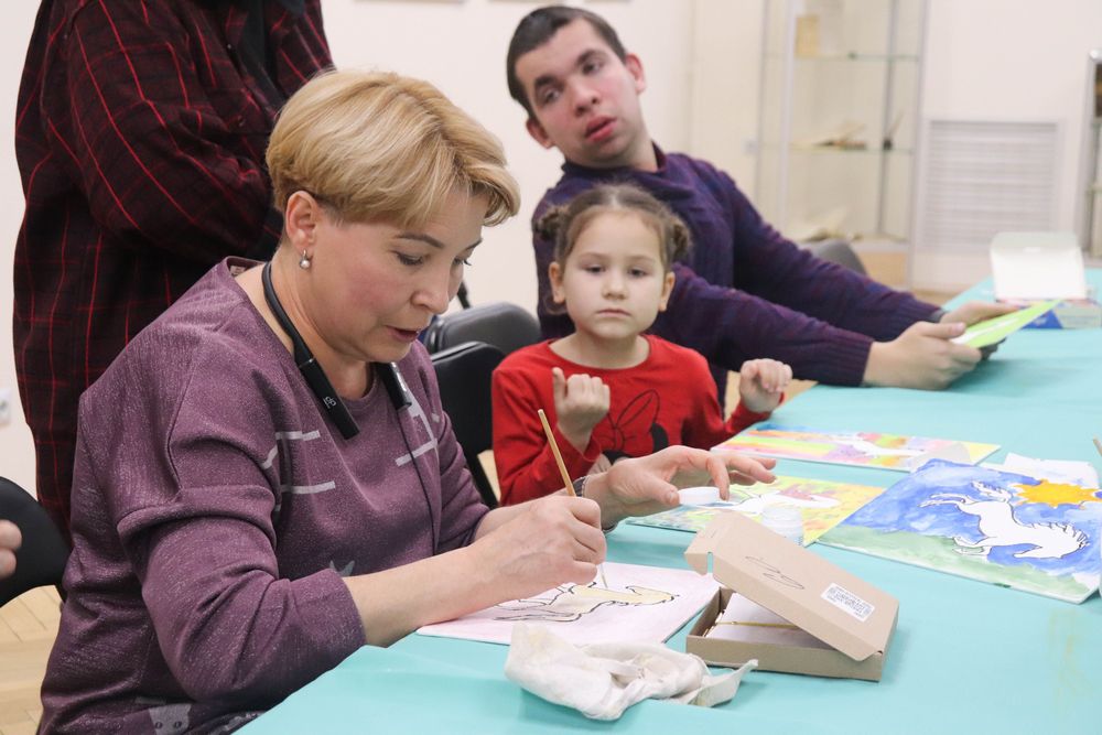 В Минской областной библиотеке имени А.С. Пушкина 16 декабря 2025 года состоялся художественный мастер-класс «Краски добра» белорусской художницы и волонтёра Татьяны Титовой для детей с особенностями развития и их родителей. Организатором встречи выступил Клуб многодетных и семей с детьми с особенностями развития «Навстречу солнцу» отдела маркетинга и социокультурной деятельности.