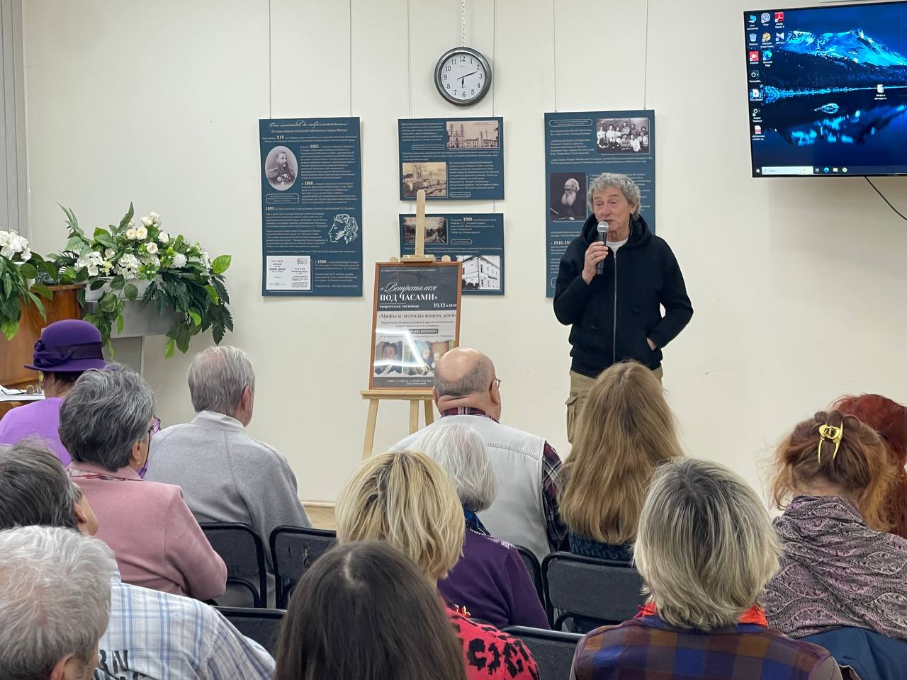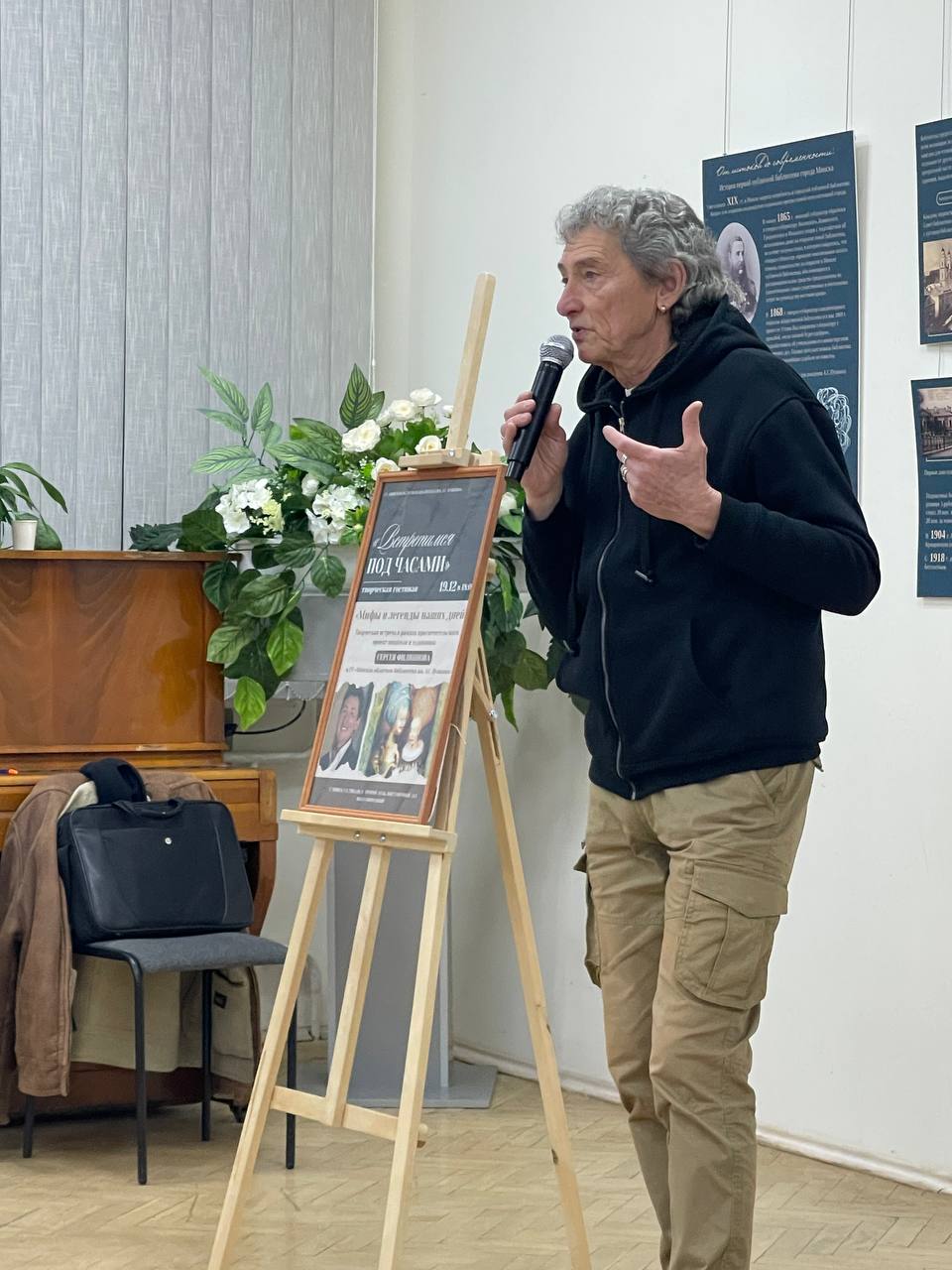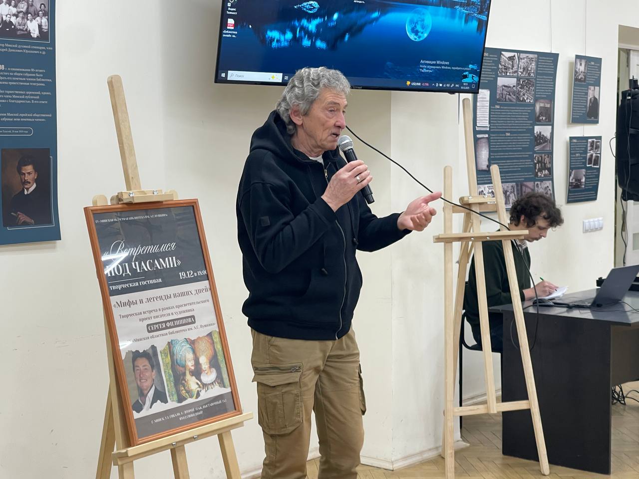 В Минской областной библиотеке имени А.С. Пушкина 19 декабря 2025 года в рамках просветительского проекта «Встретимся под часами» состоялась творческая встреча «Мифы и легенды наших дней». Куратором проекта и ведущим встречи выступил белорусский писатель и художник Сергей Филиппов.