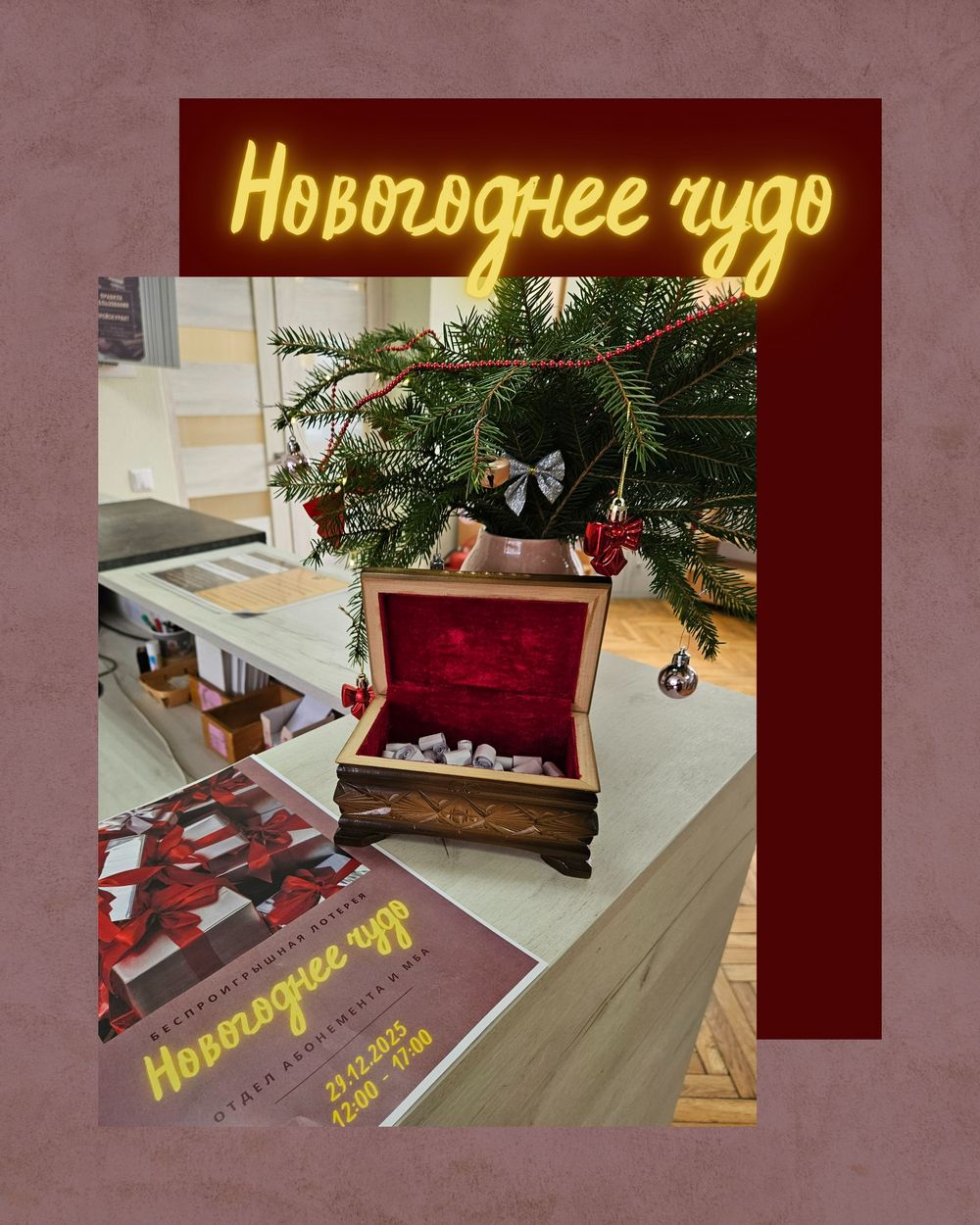 В ГУ «Минская областная библиотека им. А.С. Пушкина» в отделе абонемента и МБА 29 декабря 2025 года традиционно проводилась беспроигрышная лотерея «Новогоднее чудо». Читатели с огромным удовольствием приняли участие в этой акции.