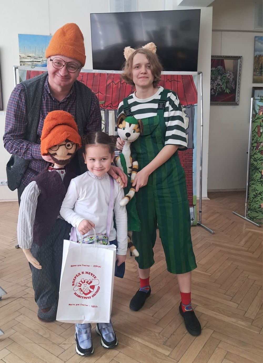 В ходе интерактивного спектакля в Минской областной библиотеке юные зрители не просто наблюдали за игрой актёров, но и стали полноправными героями сказки – помогали Петсону рыбачить, готовили праздничный торт для Финдуса и участвовали в литературной викторине. Победители викторины были награждены книгами Свена Нурдквиста.