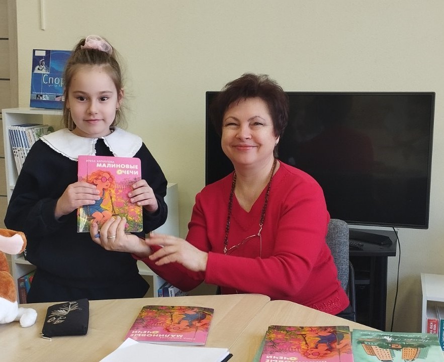 Ирина Александровна презентовала книгу «Малиновые очечи». Писательница рассказала детям о главной героине произведения, девочке Милане, которая однажды смогла увидеть необычный, иной, волшебный мир. Автор пригласила юных читателей соприкоснуться с тайной малиновых очков.