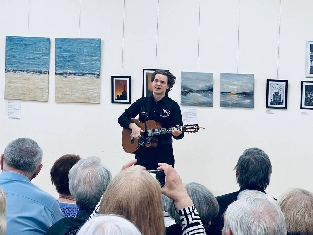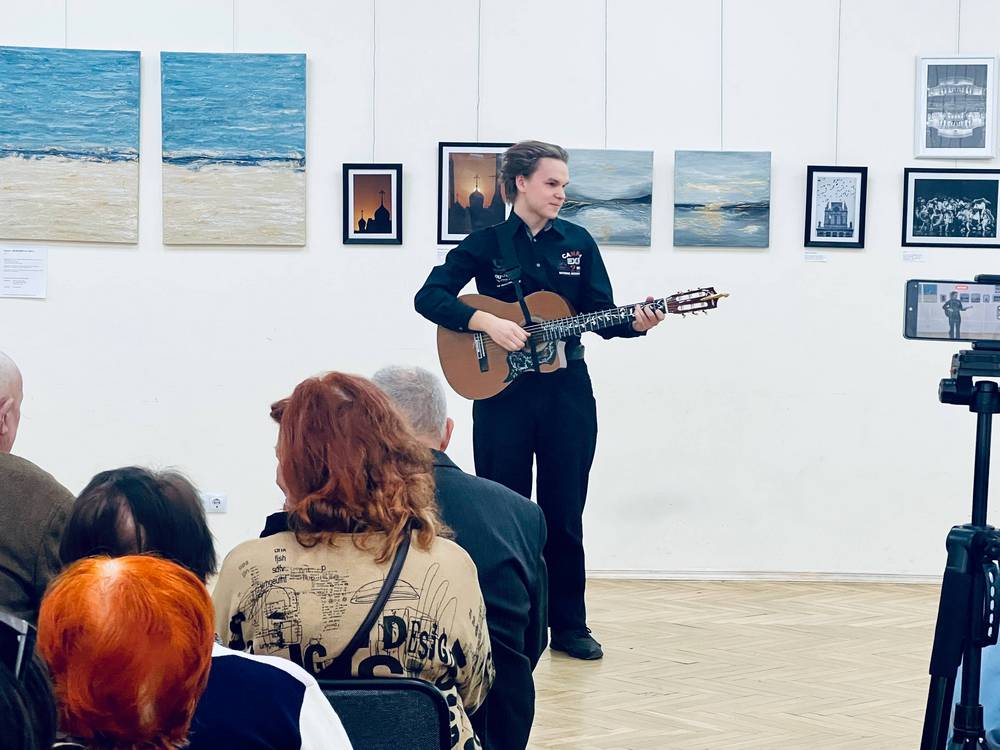 Учащийся 11 класса средней школы им. Янки Купалы № 19 г. Минска Михаил Карайченцев порадовал собравшихся зрителей композициями под аккомпанемент гитары.
