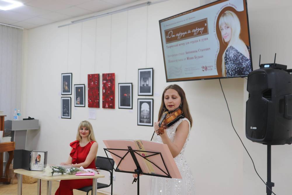 В Минской областной библиотеке имени А.С. Пушкина 20 марта 2026 года состоялся творческий вечер белорусской поэтессы Антонины Стасевич, посвящённый выходу её дебютного сборника «От сердца к сердцу».