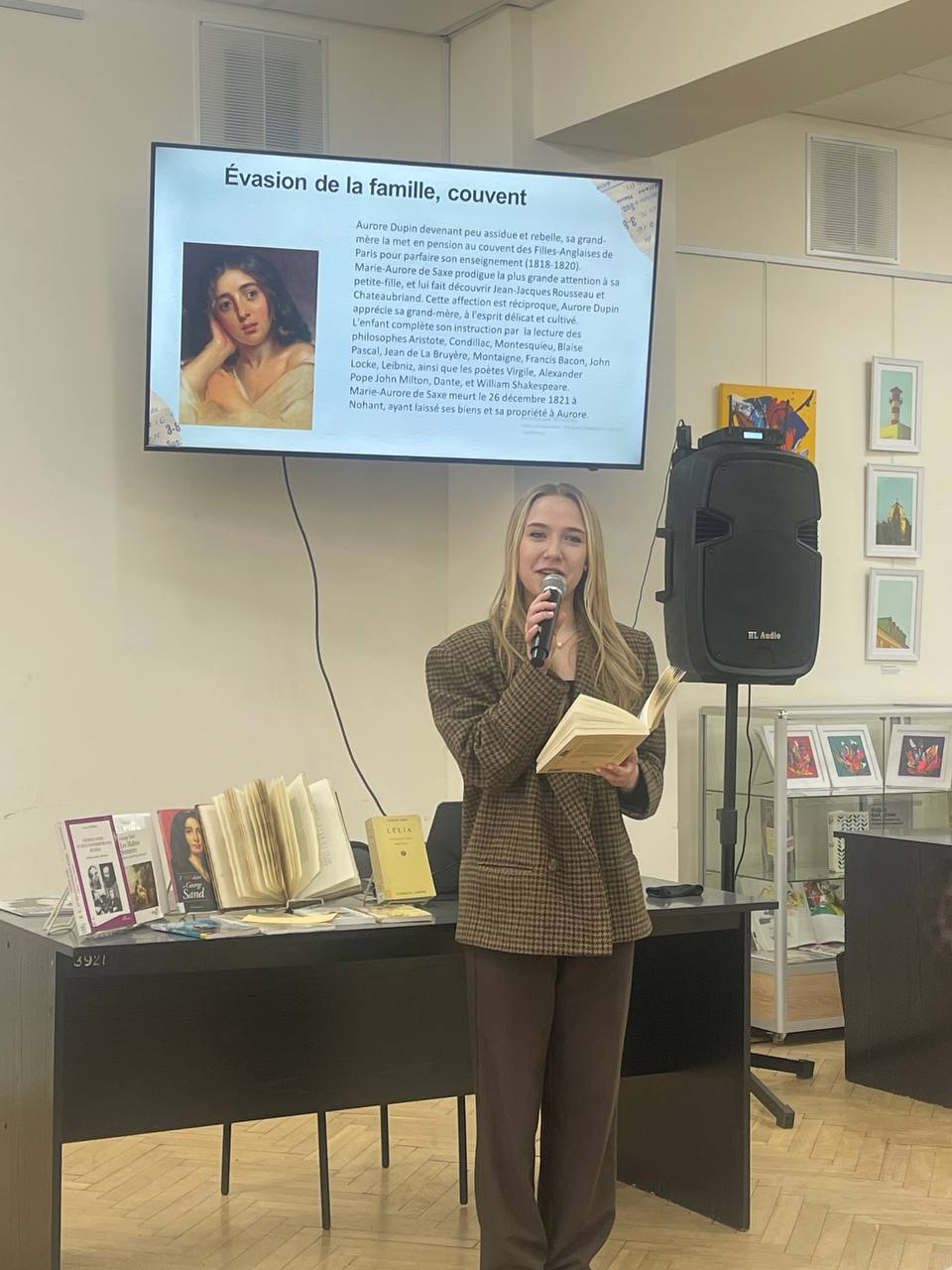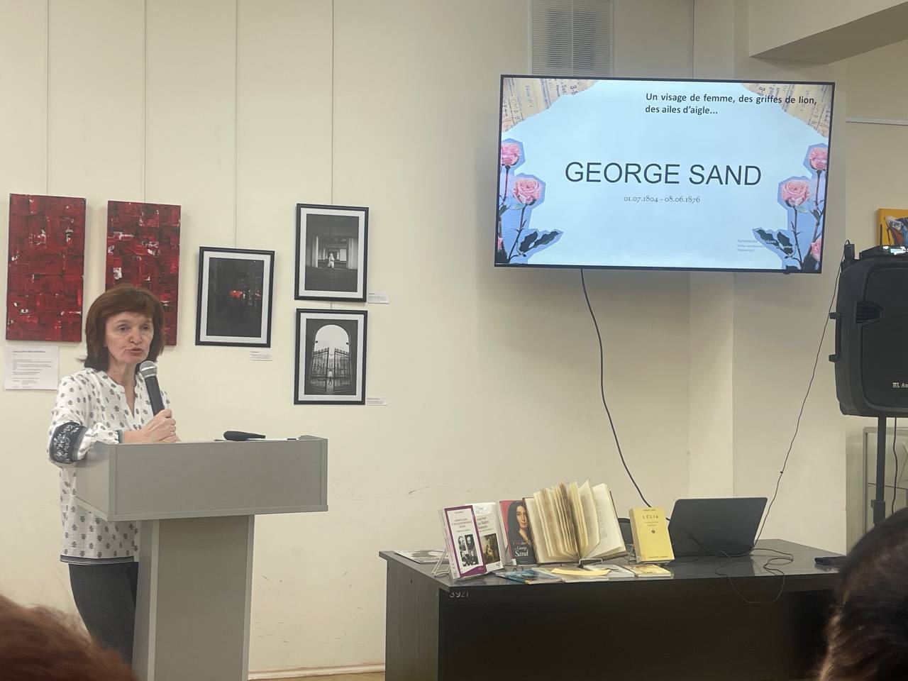 В Минской областной библиотеке имени А.С. Пушкина 27 марта 2026 года состоялась лекция «Жорж Санд: иной взгляд на общество», посвящённая жизни и творчеству знаменитой французской писательницы и активистки за права женщин первой половины 19 века. В качестве лектора выступила кандидат филологических наук, доцент кафедры факультета романских языков Белорусского государственного университета иностранных языков Ирина Владимировна Даниленко.