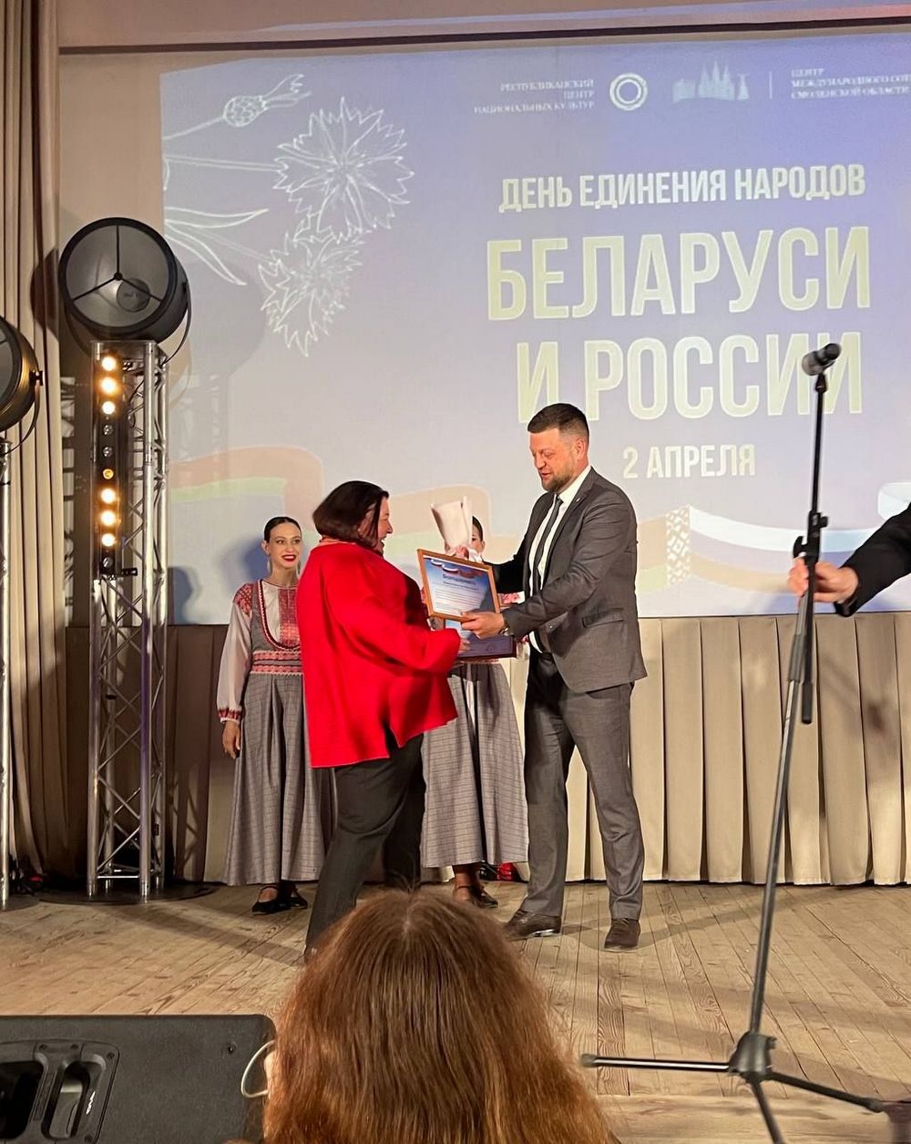 В столичном Республиканском центре национальных культур 2 апреля 2026 года состоялась церемония торжественного награждения победителей Международного конкурса тематического рисунка «В единстве наша сила», приуроченного ко Дню единения народов Беларуси и России. Организаторами конкурса выступили Центр международного сотрудничества Смоленской области и Минская областная библиотека имени А.С. Пушкина.